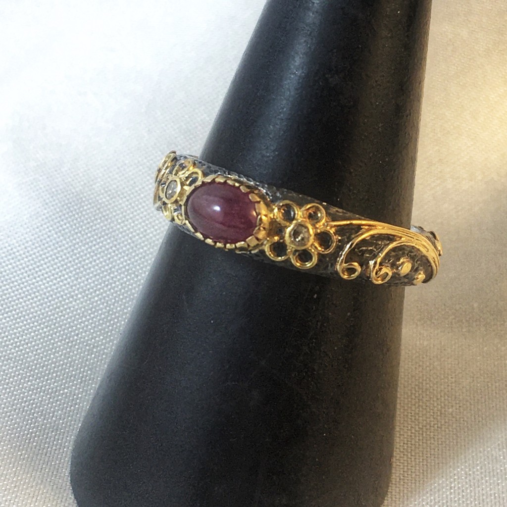 Claw Set Ruby Silver & Gold Ring